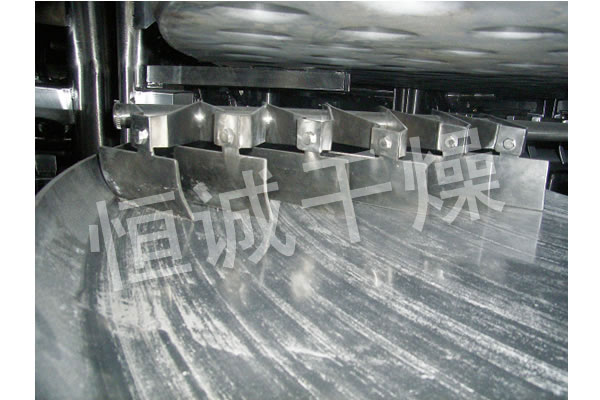 ◎碾滾:對(duì)易結(jié)塊和需要粉碎的物料,在適當(dāng)位置配加碾滾,可以強(qiáng)化傳熱和干燥過程。