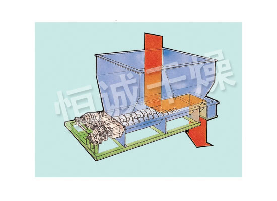 ◎水平擠出成型機: 由加料斗、二根輥子和U形振動網(wǎng)構(gòu)成。以增大物料的表面積為目的,造粒物料與振動網(wǎng)接觸,由旋轉(zhuǎn)輥子的強制壓力擠出網(wǎng)外,形成圓柱形的顆粒。